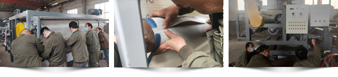 污泥壓濾機是利用濾布兩邊的壓力差,迫使物料中的絕大部分水分透過濾布,流出機體外,而物料被阻隔在濾室內形成濾餅,以達到過濾的目的。由于在過濾過程中濾布兩邊存在著較大的壓力差,提高了過濾速度降低了濾餅的含水。